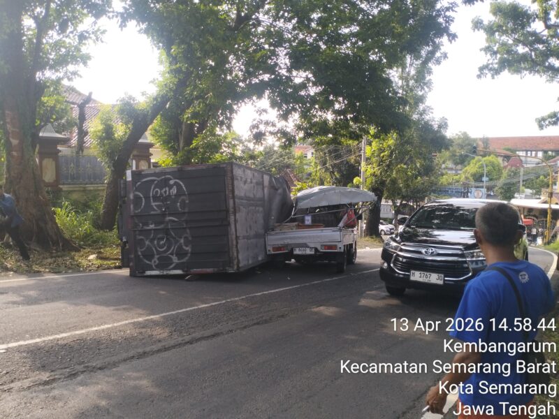 Semarang || detikindonesiasatu.com – Sebuah insiden kecelakaan lalu lintas yang nyaris berujung fatal terjadi di Jalan Abdulrahman Saleh, Kelurahan Kembangarum, Kecamatan Semarang Barat, Kota Semarang, pada Senin (13/4/2026) sekitar pukul 14.15 WIB.