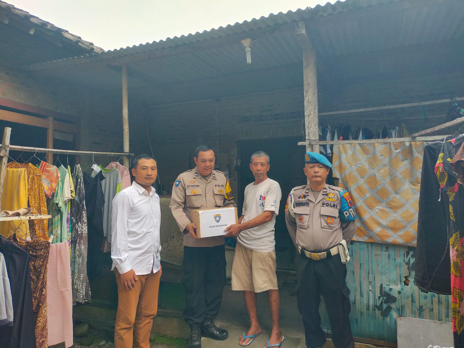 Selain menjalin silaturahmi, petugas juga menyalurkan bantuan berupa paket sembako kepada warga kurang mampu. Bantuan tersebut berisi beras, minyak goreng, telur, teh, dan mi instan.