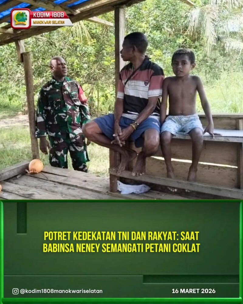 NENEY || detikindonesiasatu.com – Upaya untuk terus hadir di tengah masyarakat dan membantu kesulitan warga terus dilakukan oleh jajaran Kodim 1808/Manokwari Selatan. Salah satunya melalui kegiatan Komunikasi Sosial (Komsos) yang dilakukan Babinsa Koramil 1808-06/Neney, Serda Nikson, dengan menyambangi warga di Kampung Sesum, Distrik Neney, Senin (16/3/2026).