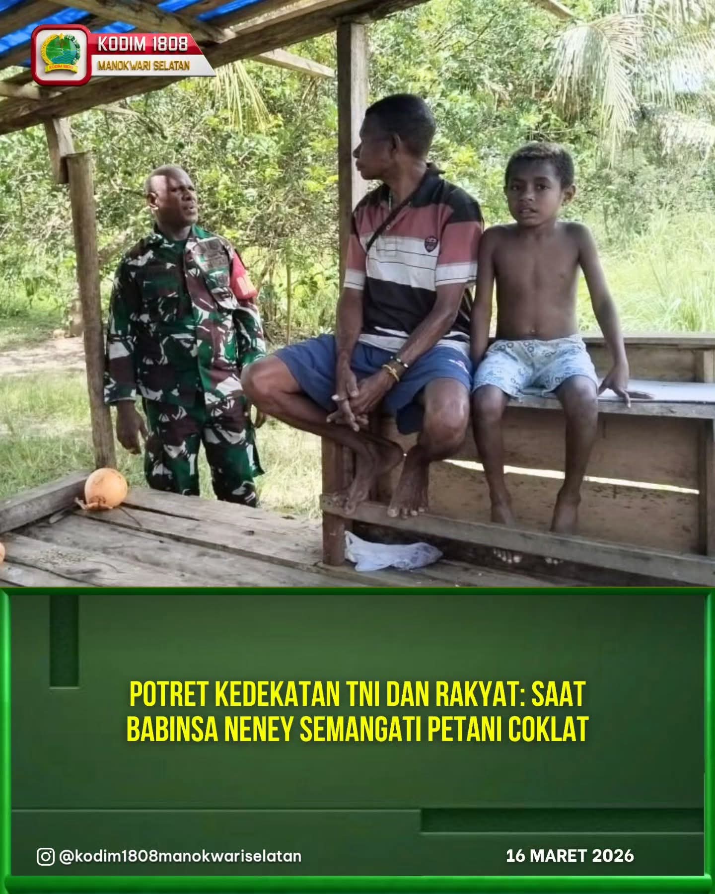 Dalam kegiatan tersebut, Serda Nikson mengunjungi Matias Ainusi (45), seorang petani coklat (kakao) setempat. Kunjungan tersebut bukan sekadar patroli wilayah, melainkan bentuk kepedulian TNI dalam membangun kedekatan dengan masyarakat sekaligus memberikan dukungan moral kepada para petani.