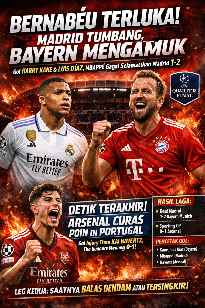 Kemenangan Bayern dan Arsenal membuka peluang besar untuk melangkah ke semifinal. Namun, leg kedua dipastikan tetap panas, terutama bagi Real Madrid yang harus tampil habis-habisan untuk membalikkan keadaan.