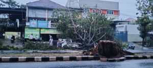 SEMARANG | detikindonesiasatu.com– Hujan deras yang mengguyur wilayah Semarang pada Selasa sore sekitar pukul 17.00 WIB mengakibatkan sebuah pohon tumbang dan menimpa satu unit mobil di Jalan Suratmo, Kelurahan Gisikdrono, Kecamatan Semarang Barat.