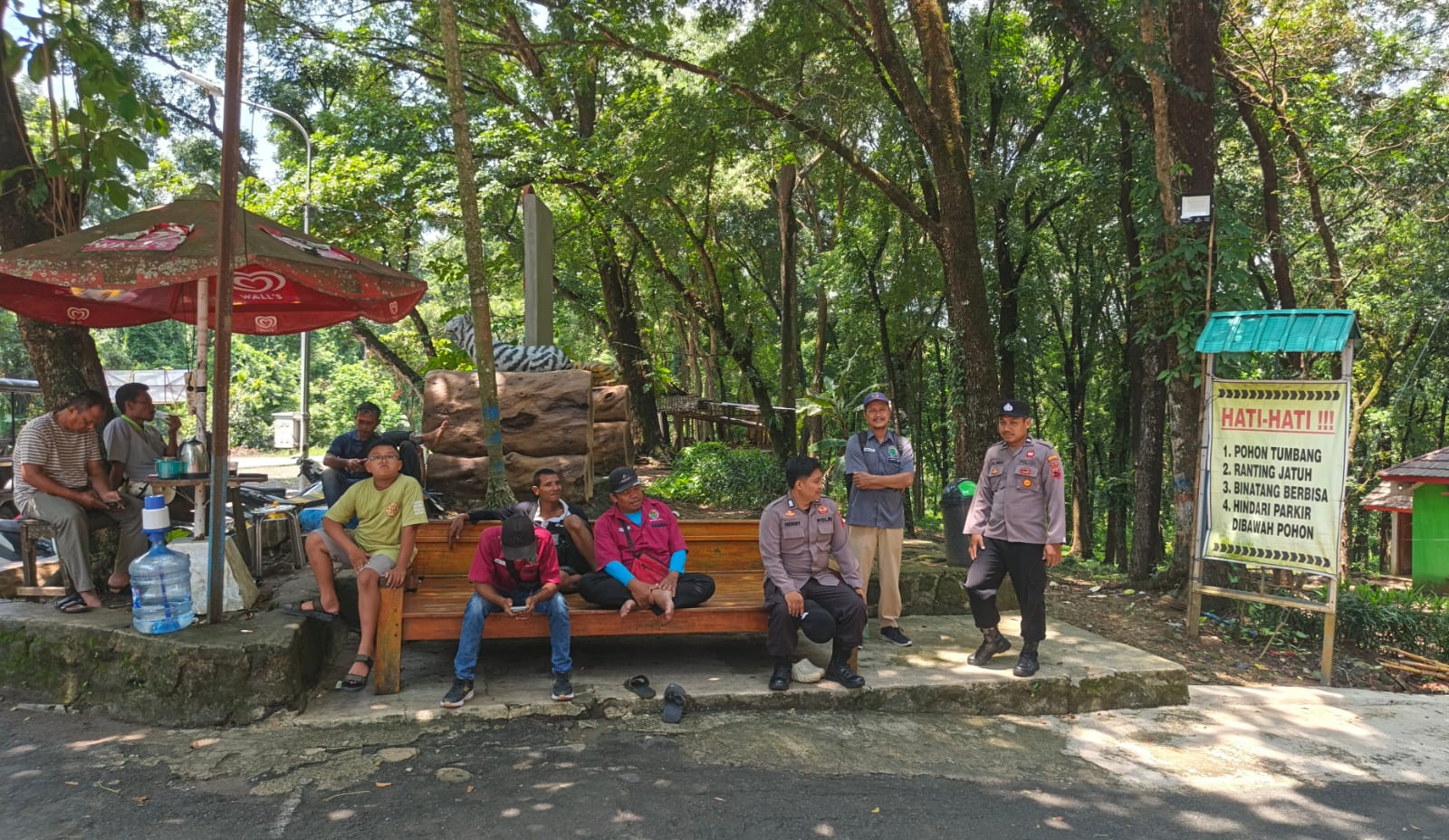 Kegiatan yang dimulai sejak pukul 09.00 WIB tersebut melibatkan dua personel, yakni Aipda Sihlawan dan Brigadir Heri S. Dari hasil pemantauan, jumlah pengunjung yang memadati kawasan wisata tersebut diperkirakan mencapai sekitar 300 orang.