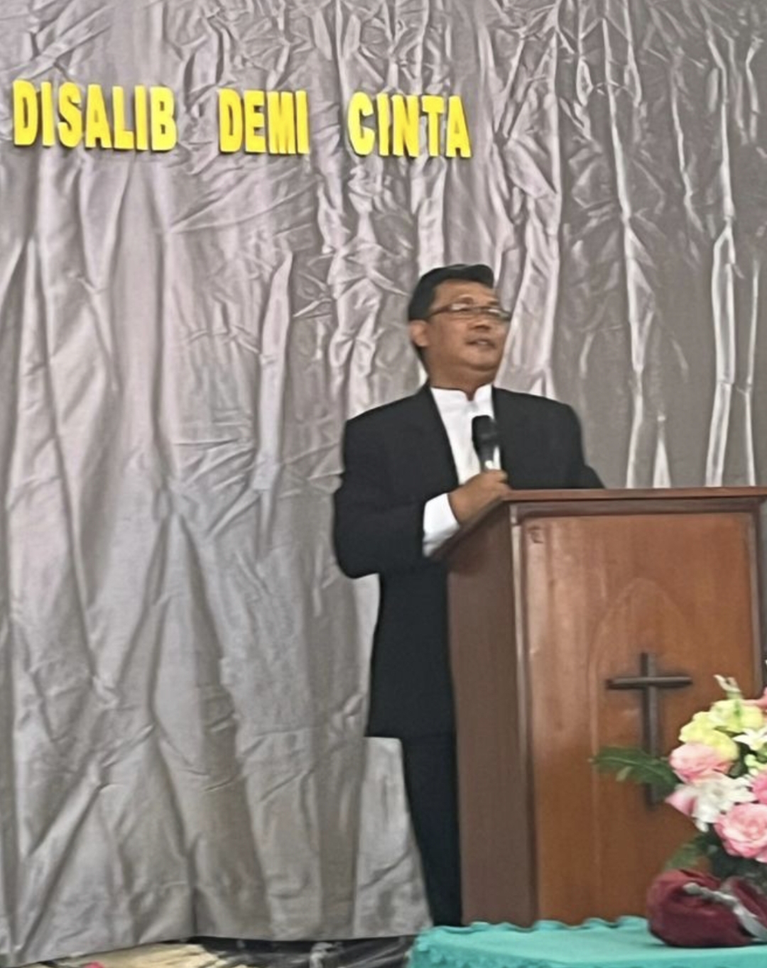 “Tuhan disalibkan demi cinta dan kasih kepada kita semua. Hal ini sebagaimana tertulis dalam Yohanes 3:16, bahwa begitu besar kasih Allah akan dunia ini, sehingga setiap orang yang percaya kepada-Nya tidak binasa, melainkan beroleh hidup yang kekal,” ujarnya di hadapan jemaat.