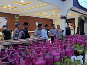 Saat digerebek, polisi mendapati para pelaku tengah melakukan praktik yang dikenal sebagai “suntik gas”, yakni memindahkan isi tabung gas 3 kg ke tabung ukuran 12 kg hingga 50 kg tanpa izin resmi.